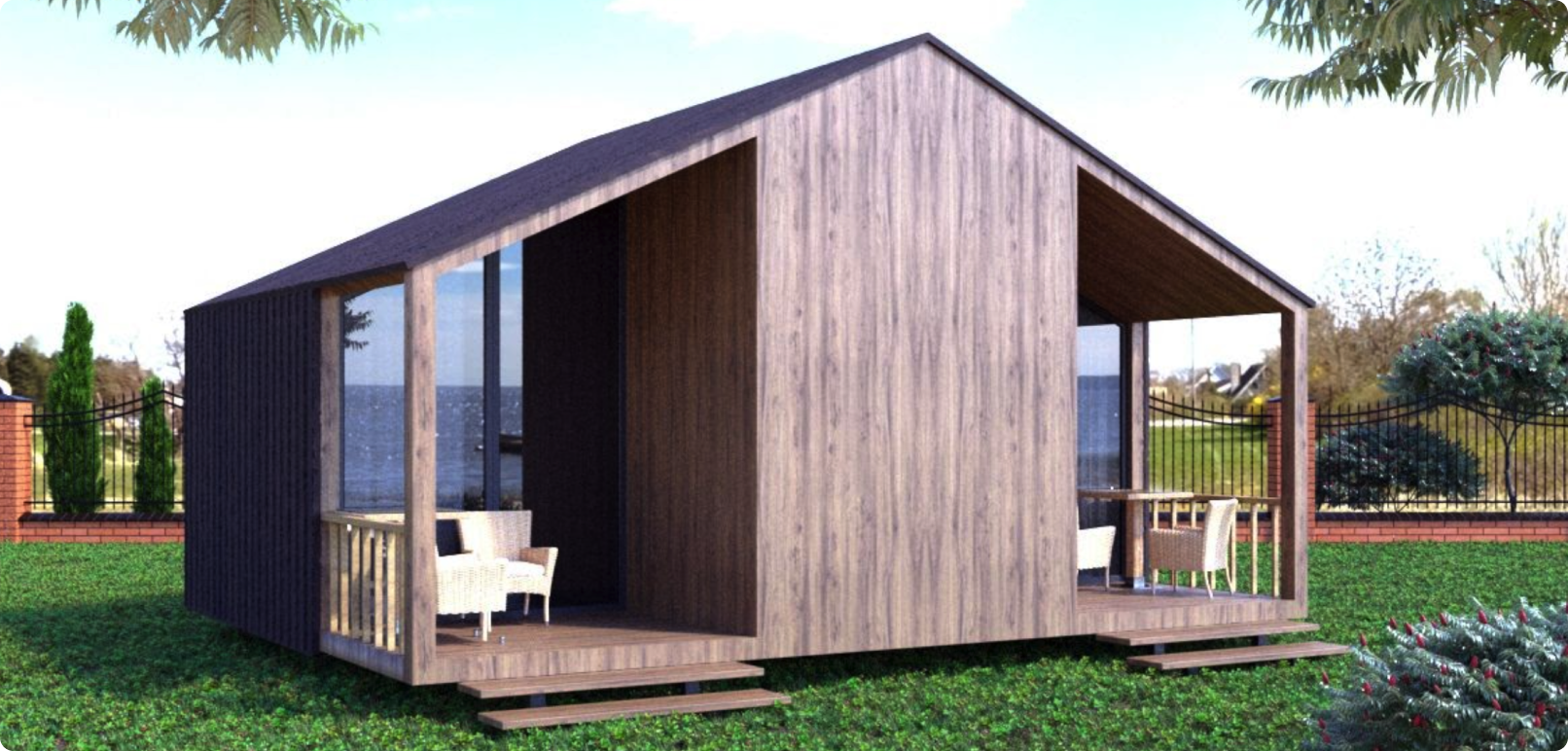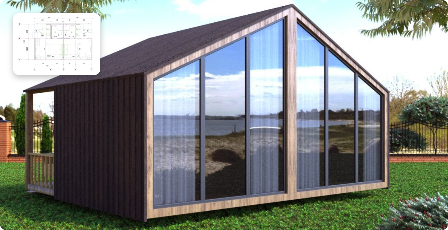Комплект стен, готовые панели, согласно раскрою - внешние и несущие 45*145 мм, , межкомнатные перегородки 45*145 мм. Обшивка всех стен для жесткости ОСБ 10мм. Пол 1-го этажа - 195*45мм + ОСБ 18мм