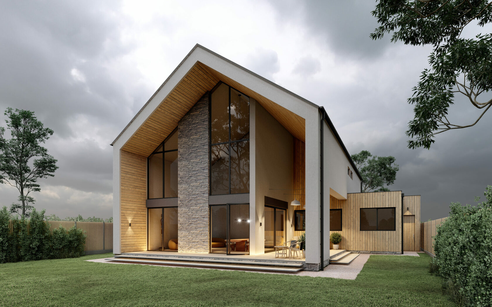 Комплект стен, готовые панели, согласно раскрою - внешние и несущие 45*145 мм, , межкомнатные перегородки 45*145 мм. Обшивка всех стен для жесткости ОСБ 10мм. Пол 1-го этажа - 195*45мм + ОСБ 18мм