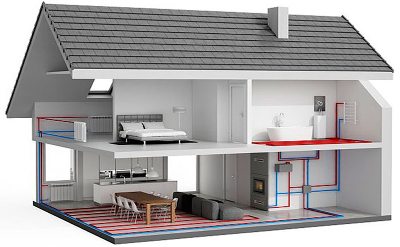 Монтаж на електрическа инсталация до точка. Монтаж на канализационни и водопроводни тръби за свързване вътре в къщата.