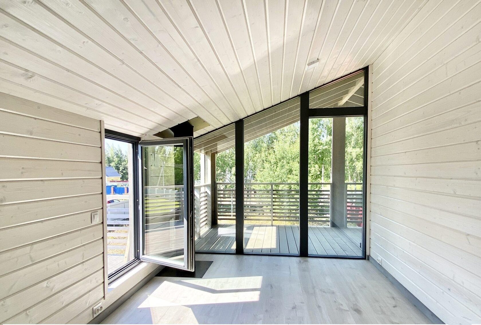 Довършителни работи по стени и тавани: В зависимост от визуализацията на проекта предлагаме избор на дървена ламперия от скандинавска дървесина или влагоустойчива pvc ламперия с ламиниране под дървесна текстура. В баните само PVC влагоустойчива плоча.